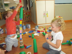 Hoy trabajamos en una nueva sesión de Juego Heurístico en donde investigamos con tapaderas, anillas, conos y latas contenedoras. Elegimos el espacio con el suelo de madera en donde tenemos menos objetos ajenos al juego y que pueden hacer que no nos centremos tanto en la actividad propuesta.