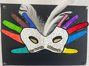 También estamos elaborando nuestros antifaces a partir de la silueta de nuestra propia mano. Están quedando la mar de bonitos.