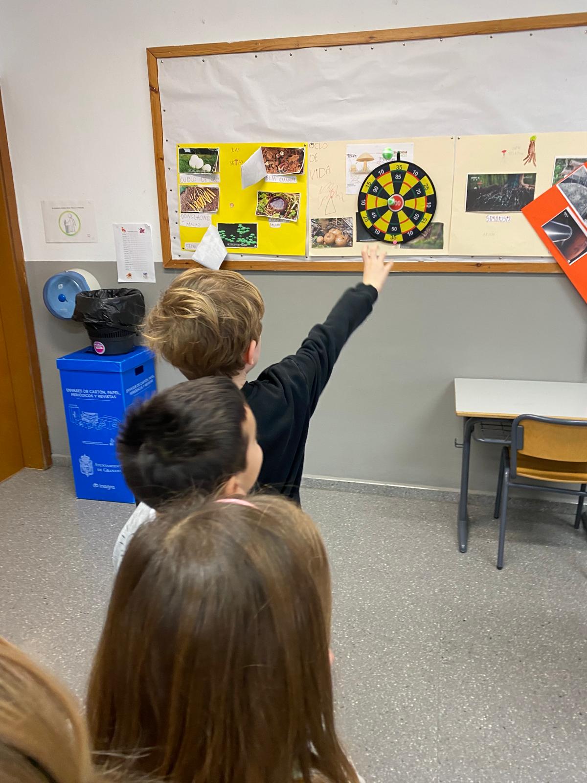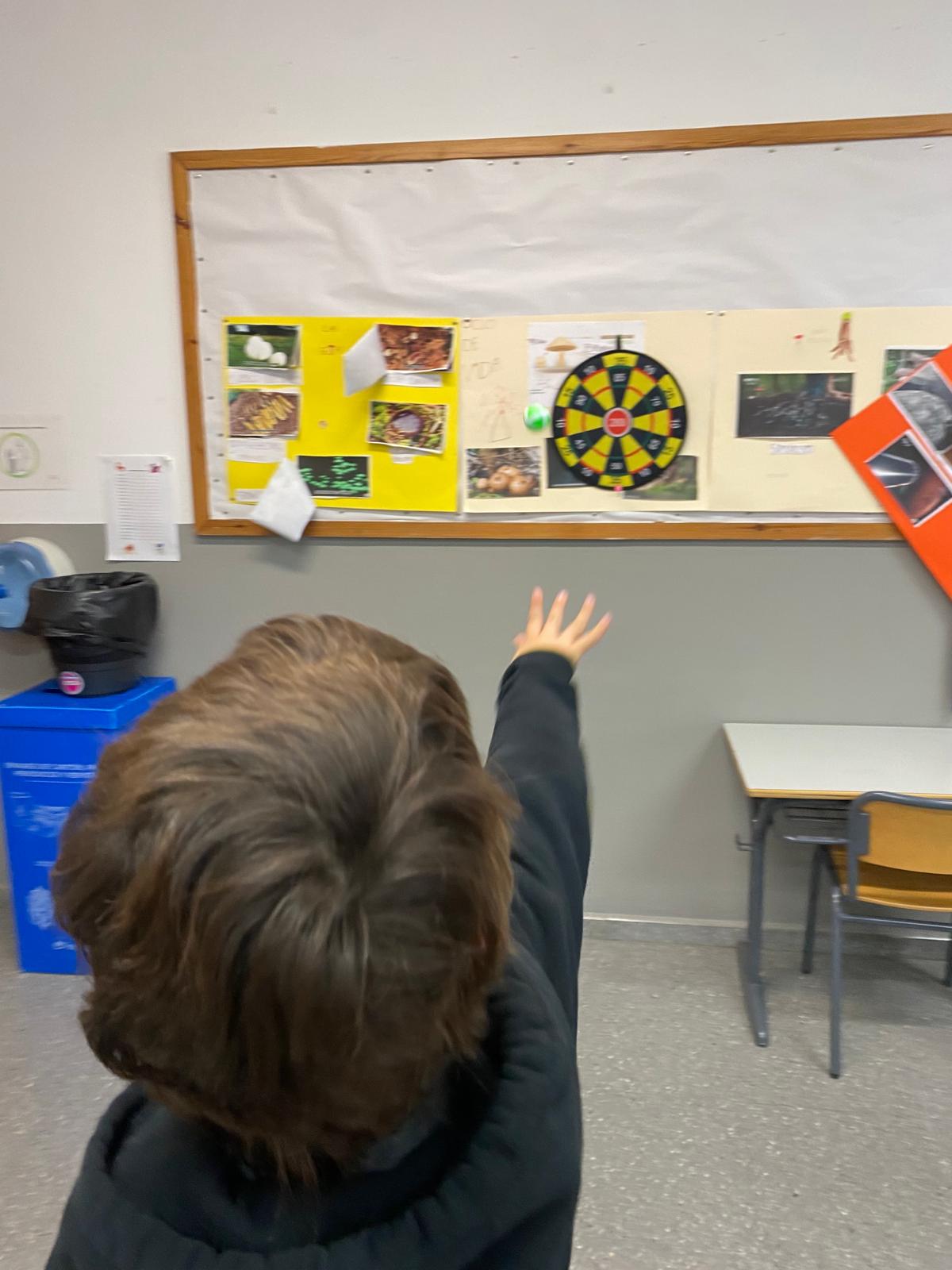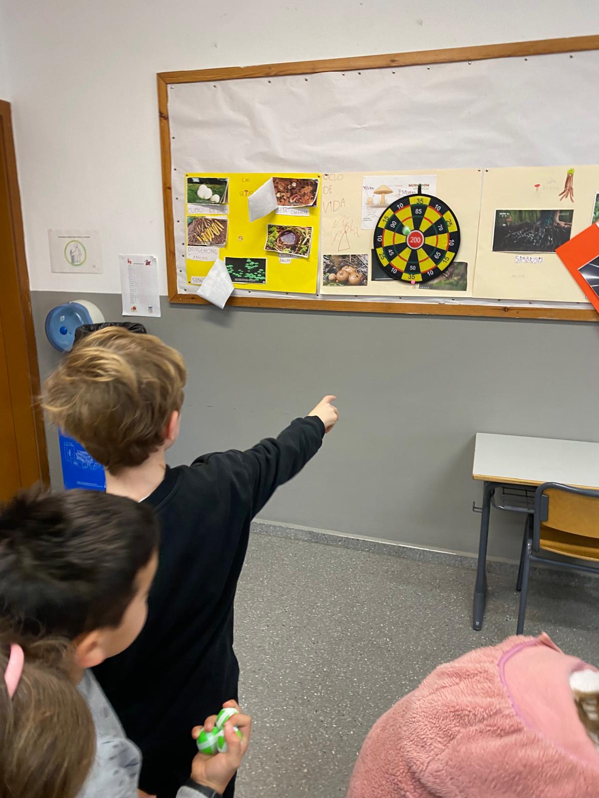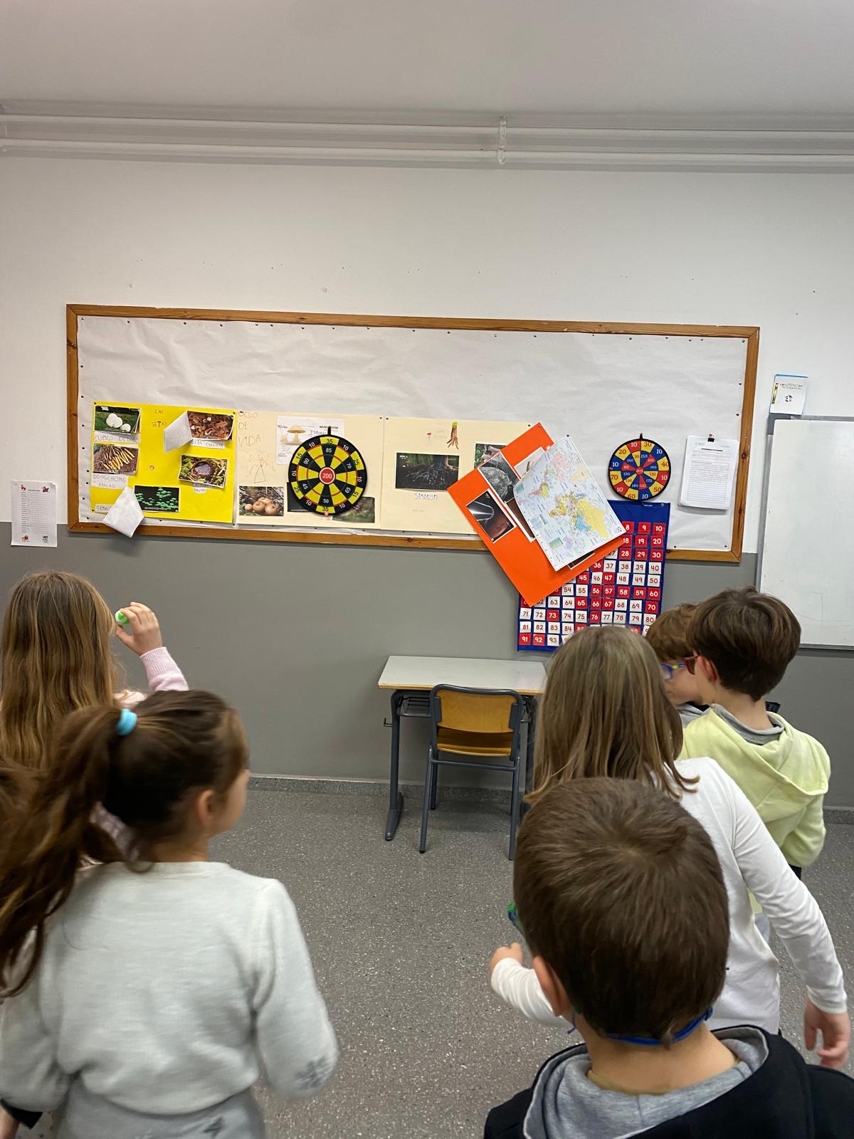 Hemos transformado la clase en un pequeño campo de lanzamiento. Colocamos la diana y lanzamos, apuntamos y sumamos. Detrás del juego se escondía el reto matemático de hacer operaciones varias además de dar significación de manera práctica a la importancia del cálculo.