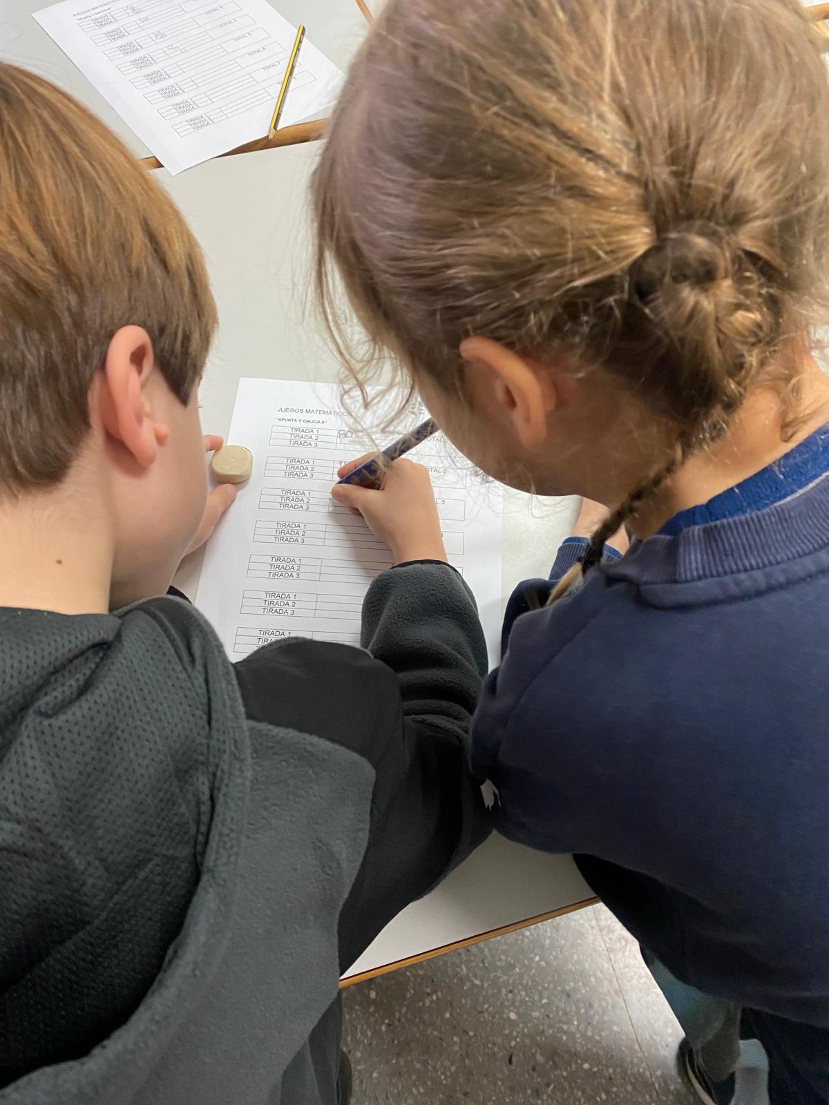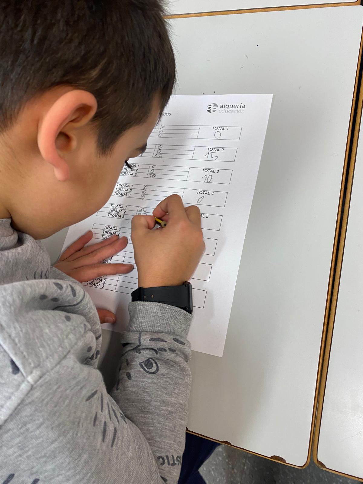 En cada tirada, han sumado la puntuación obtenida por sus tres pelotas y anotado el resultado para hacer la suma y conseguir la puntuación de la tirada. Después de completar todas las tiradas, sumamos todas ellas para obtener una puntuación final total. De esta manera, practicamos sumas de números cada vez más grandes, llegando a superar en algunos casos el millar. Y todo ello con la motivación del juego.