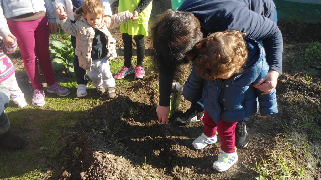 Hoy,  ¡plantamos! Los andantes tienen la oportunidad de plantar habas en el huerto.