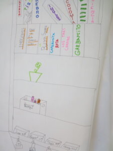 Sexto, montamos cajas para guardar los productos, hacemos cartelería para colocar en las cajas. Les ponemos a las cajas el logotipo del centro.